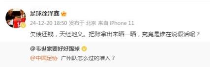 媒体人“足球徐泽鑫”写道:“欠债还钱,天经地义。把账拿出来晒一晒,究竟是谁在说假话呢?”
